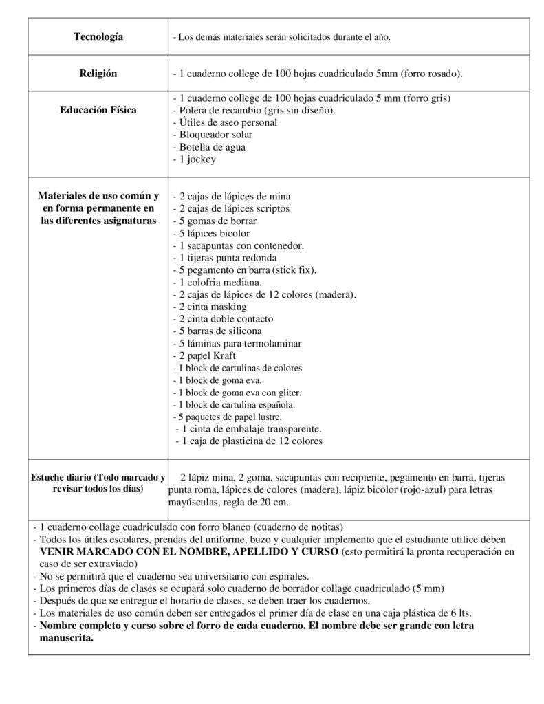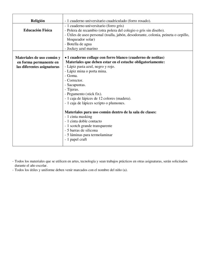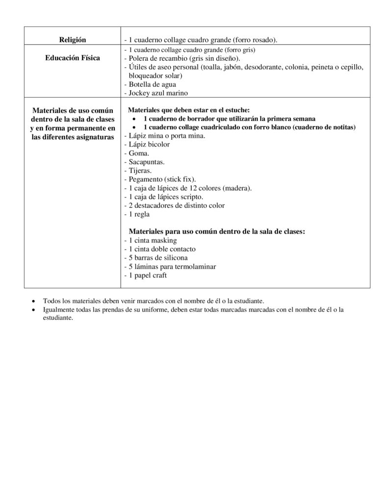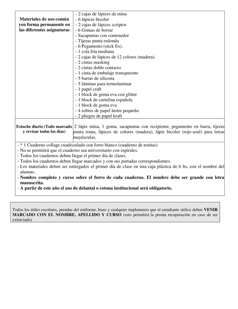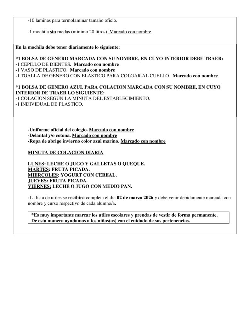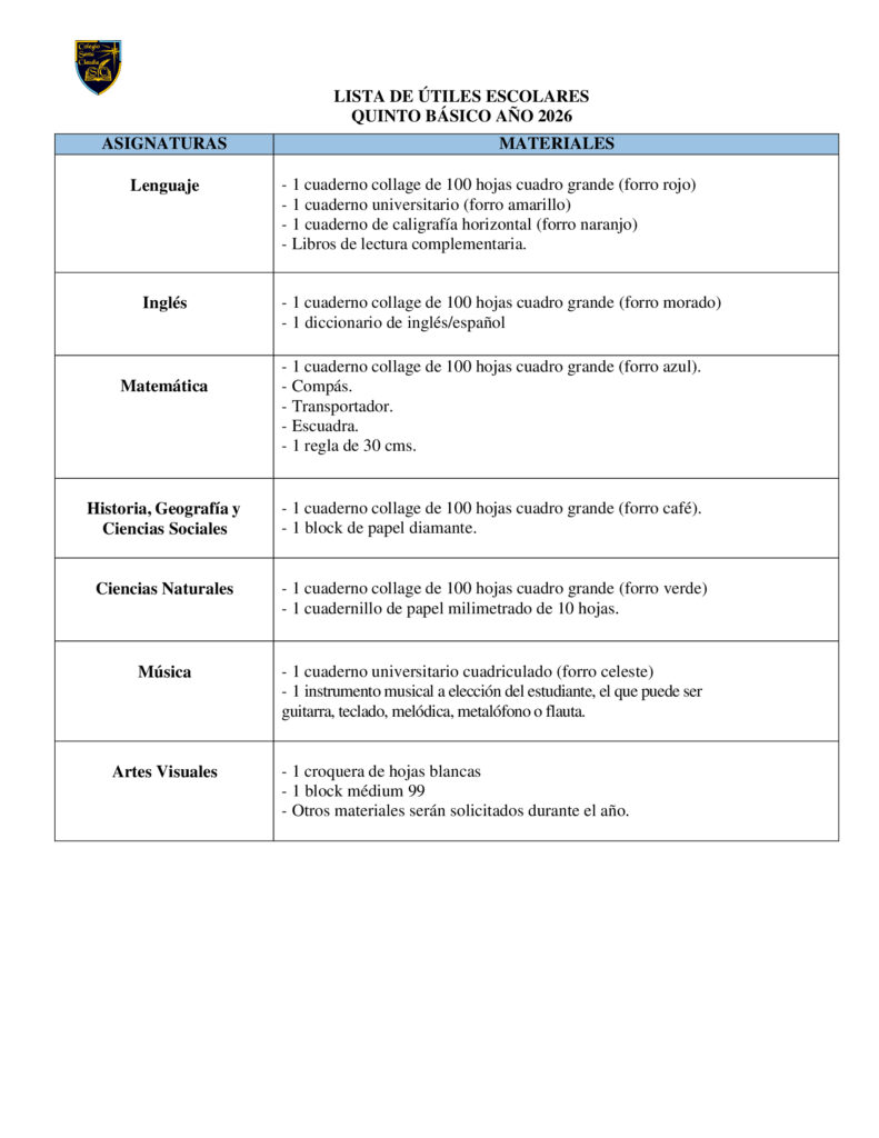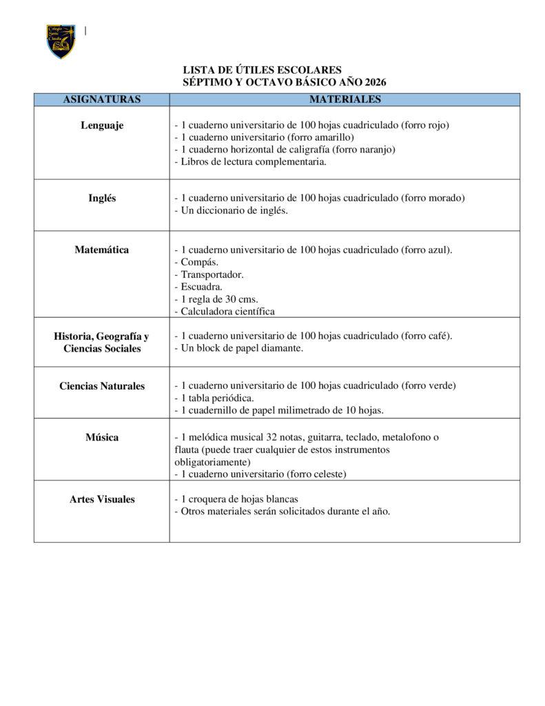 Listas de Útiles 2026